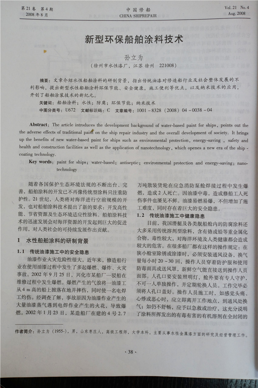 徐州市水性漆厂成立于1990年,产品自主研发填补国内水性工业空白。徐州市三为水性漆科技有限公司与中国矿业大学联合成立水性漆研发中心,从韩国尚庆大学引进国际纳米学者博士后姜继森教授为我公司技术总经理,专注水性纳米应用。三十余年来硕果累累,先后承接两 次 国 家 级 星火计划,中小企业技术创新基金,多项国家发明专利授权并在国家专利局“国际专利博览会”国际专利博览会中荣获创新奖与金奖,全国军民融合企业,《CCTV工匠精神》企业,国家生产力促进中心评为中国好技术,获“中国节能环保创业应用大赛”创新应用奖,中国企业诚信经营示范单位,江苏省民营科技企业,中船重工涂装专业委员会成员,《中国修船》编委,多次在 国 家 级 期刊发布学术论文,通过中国船级社检测,通过中国铁道部科学院检测。?